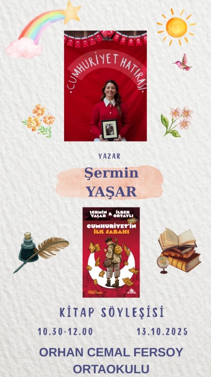 13 Ekim pazartesi günü okulumuza Yazar Şermin YAŞAR gelecektir.